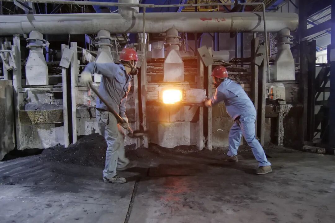 锑冶炼厂反射炉员工在操作